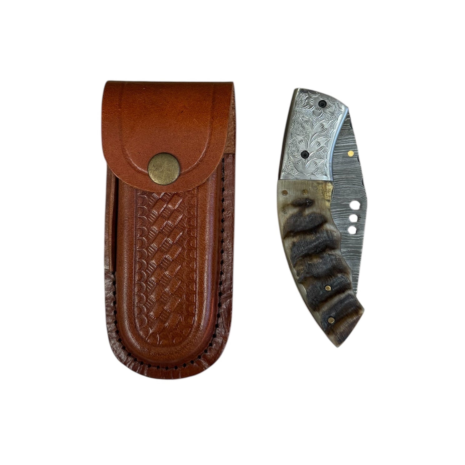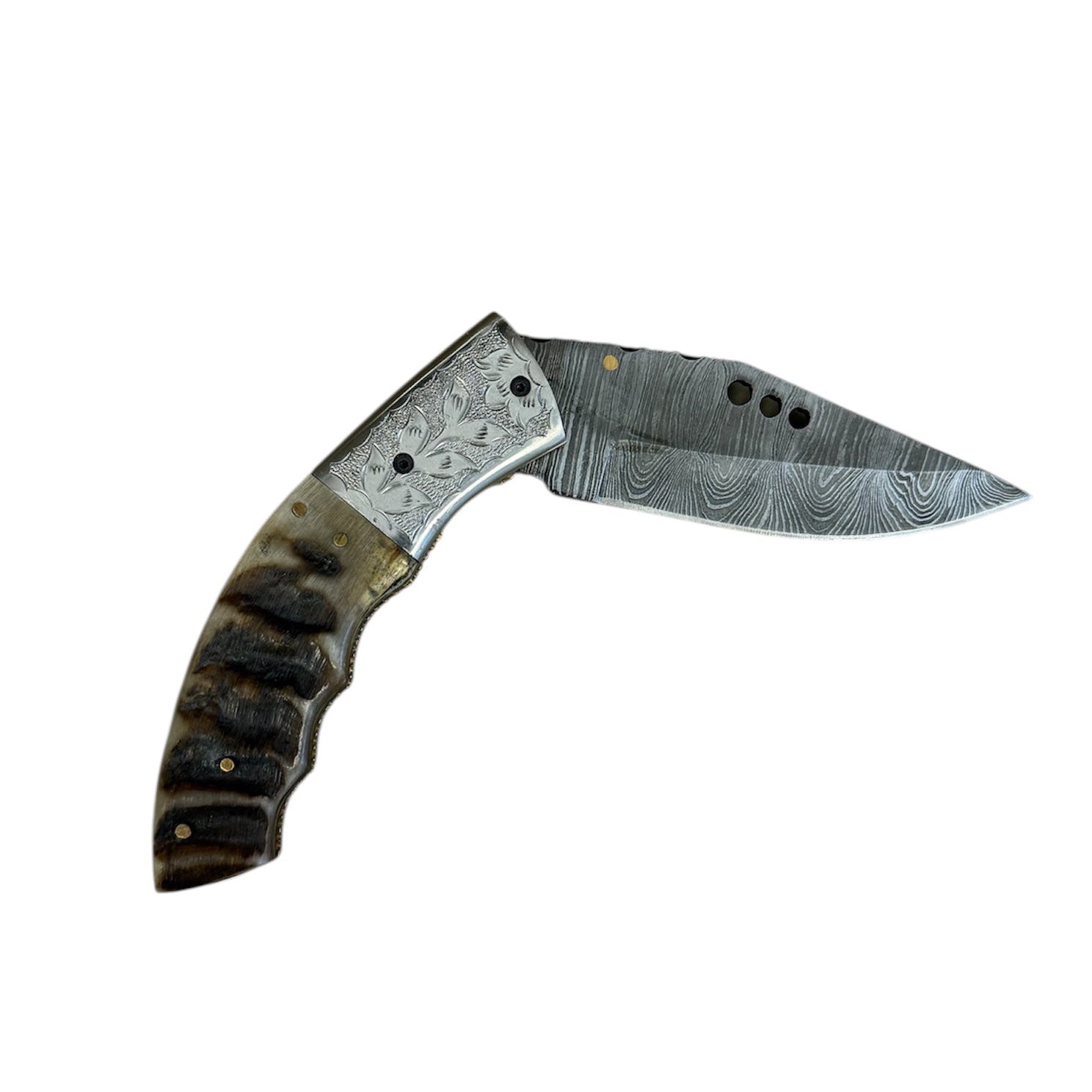 - Handle: Natural Goat Horn with Hand-Engraved Steel Bolsters