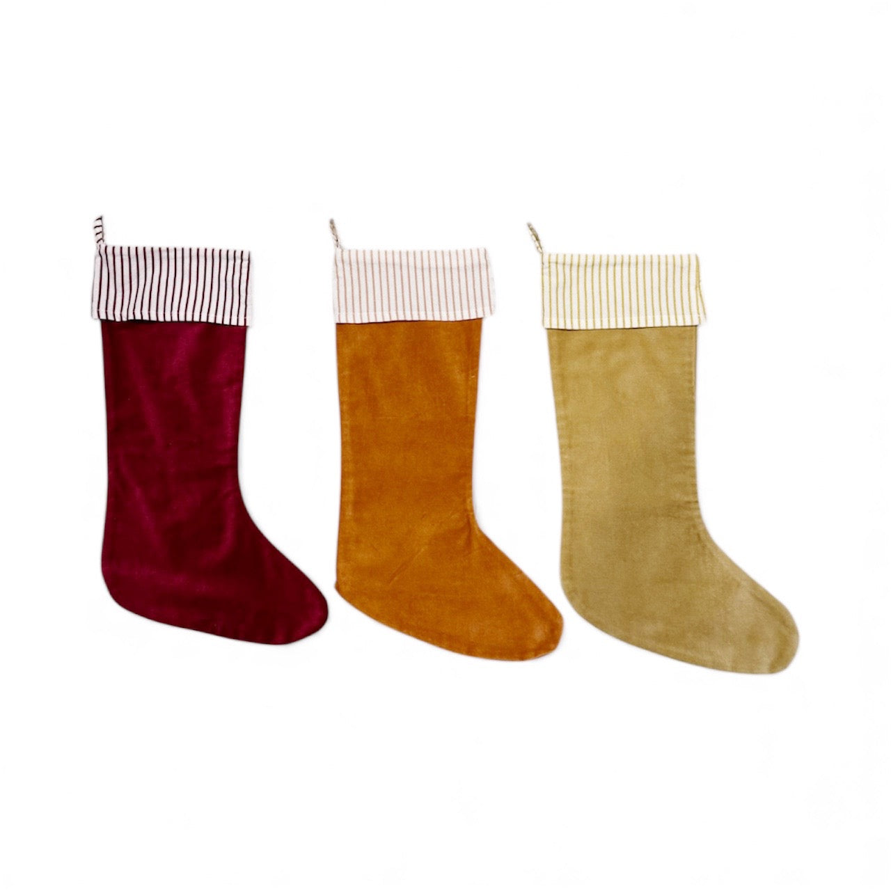 Our velvet and cotton stocking is designed with the timeless Christmas charm we all love.  The rich velvet, paired with cotton trim, brings a warm, nostalgic feel to your mantel.  It's the kind of classic stocking that looks like it's been part of your holiday traditions for generations.