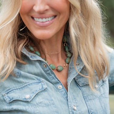 Model is also wearing our Luna earrings and Blake necklace.