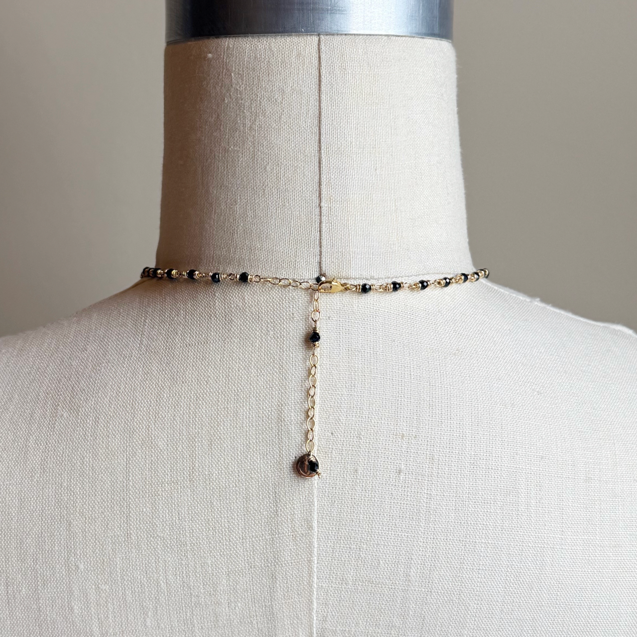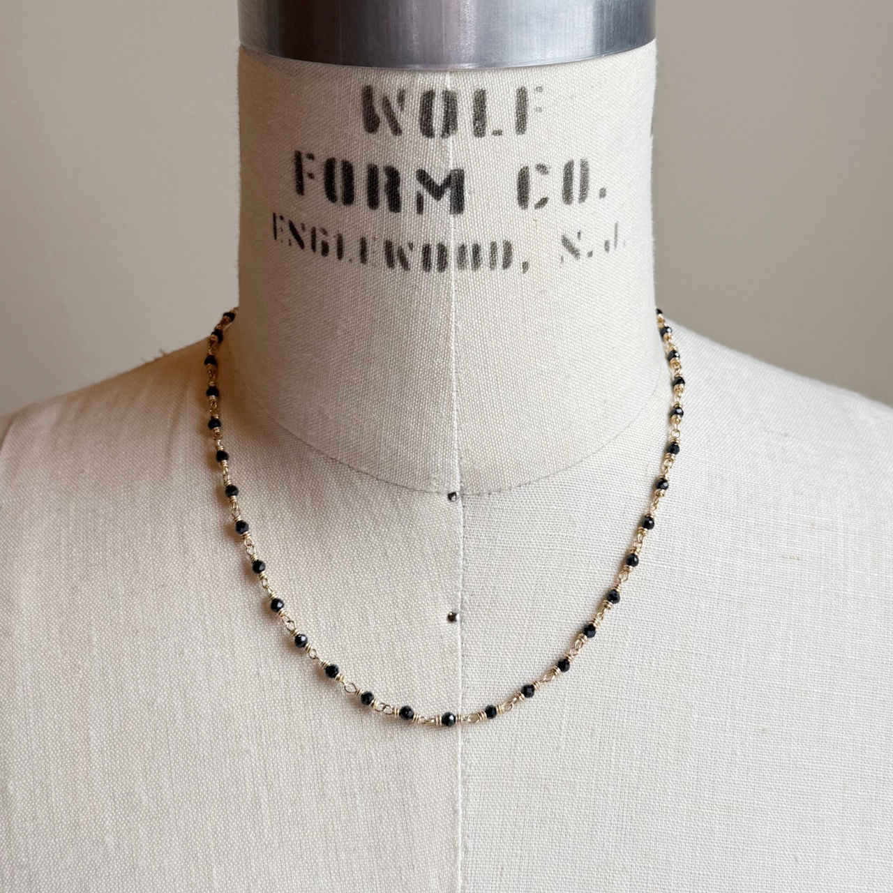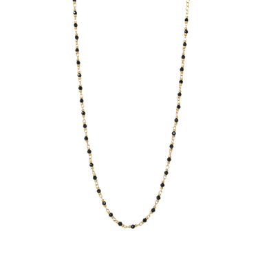 A standout layering essential, this Alex necklace showcases faceted black spinel stones, creating a sophisticated contrast that elevates any look. The stark black stones paired with warm gold metal create a bold yet refined contrast. Deep, dimensional, and effortlessly striking, it’s neutral enough to pair with any outfit while still making a confident statement. Also available in silver pyrite.