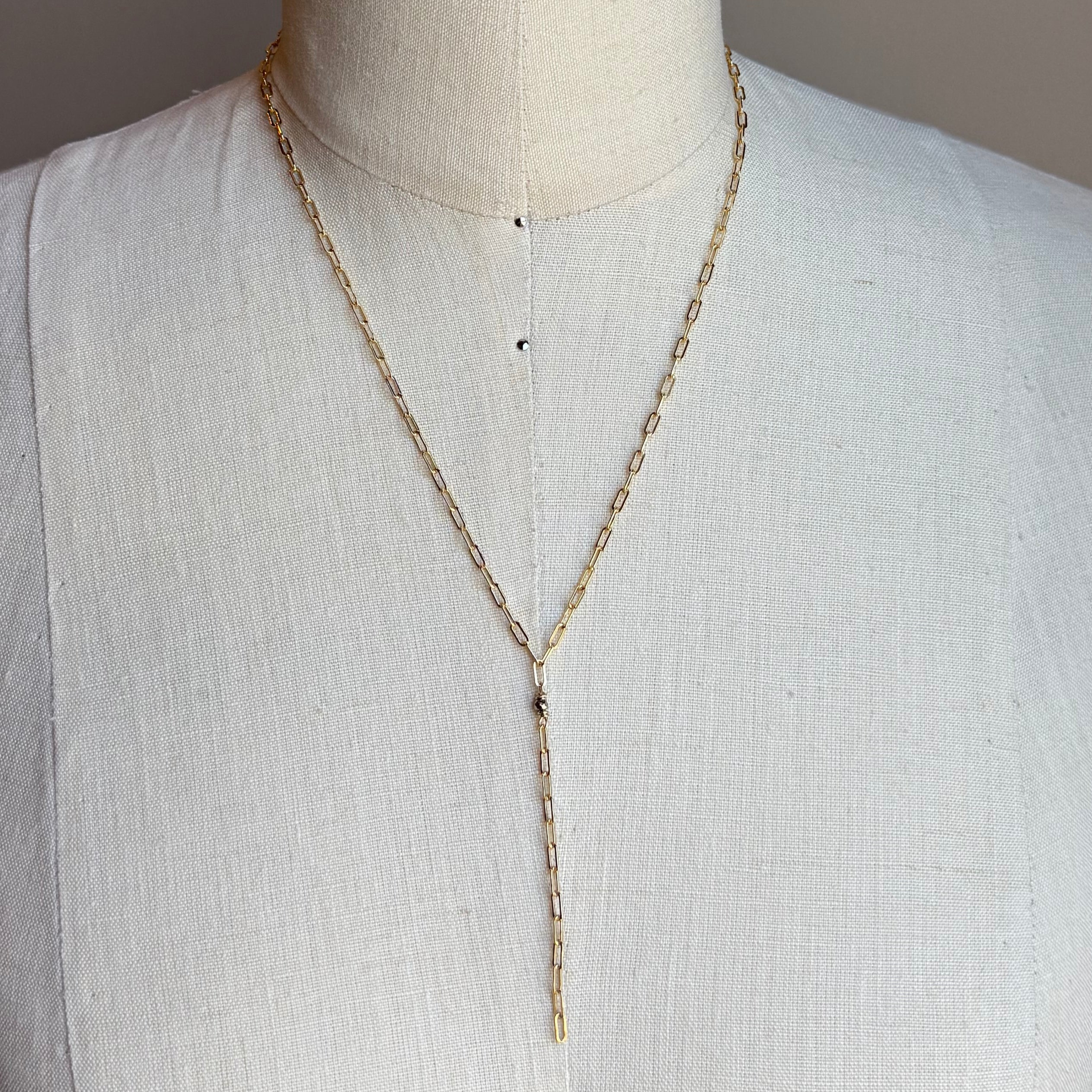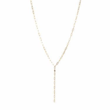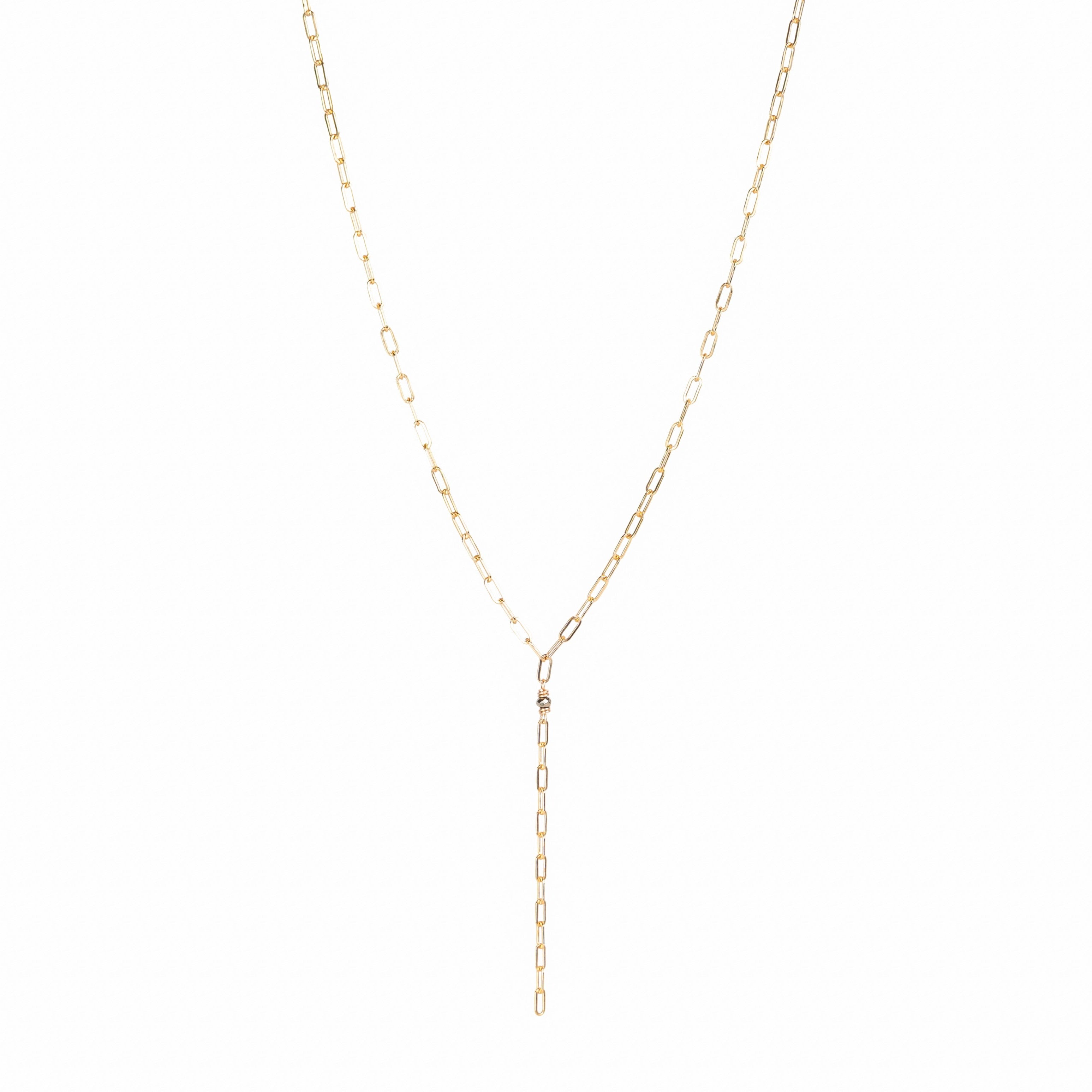 Elevate everyday elegance with the Kristin necklace. A delicate gold-fill paperclip chain, this lariat-style piece drapes gracefully, adding a modern, effortless touch to any outfit. Its minimalist design makes it perfect for layering or wearing solo for understated sophistication.