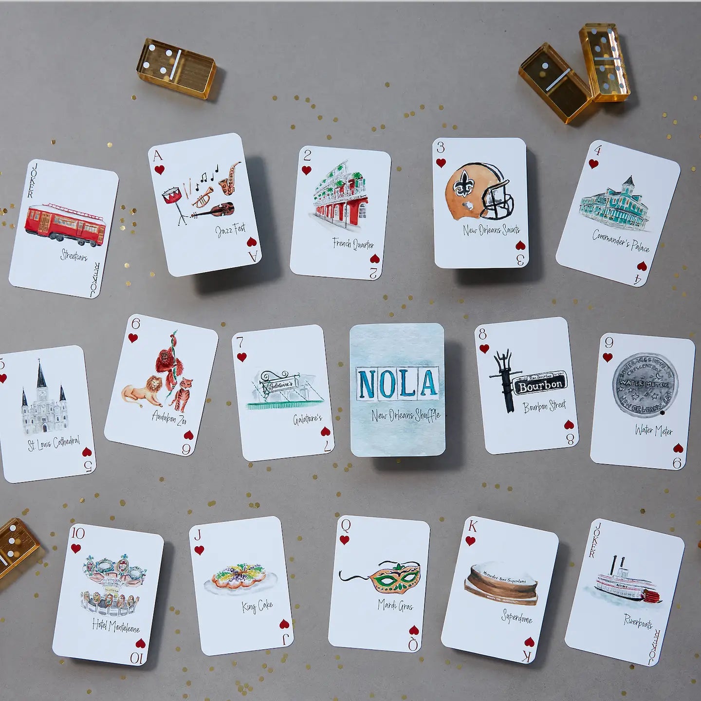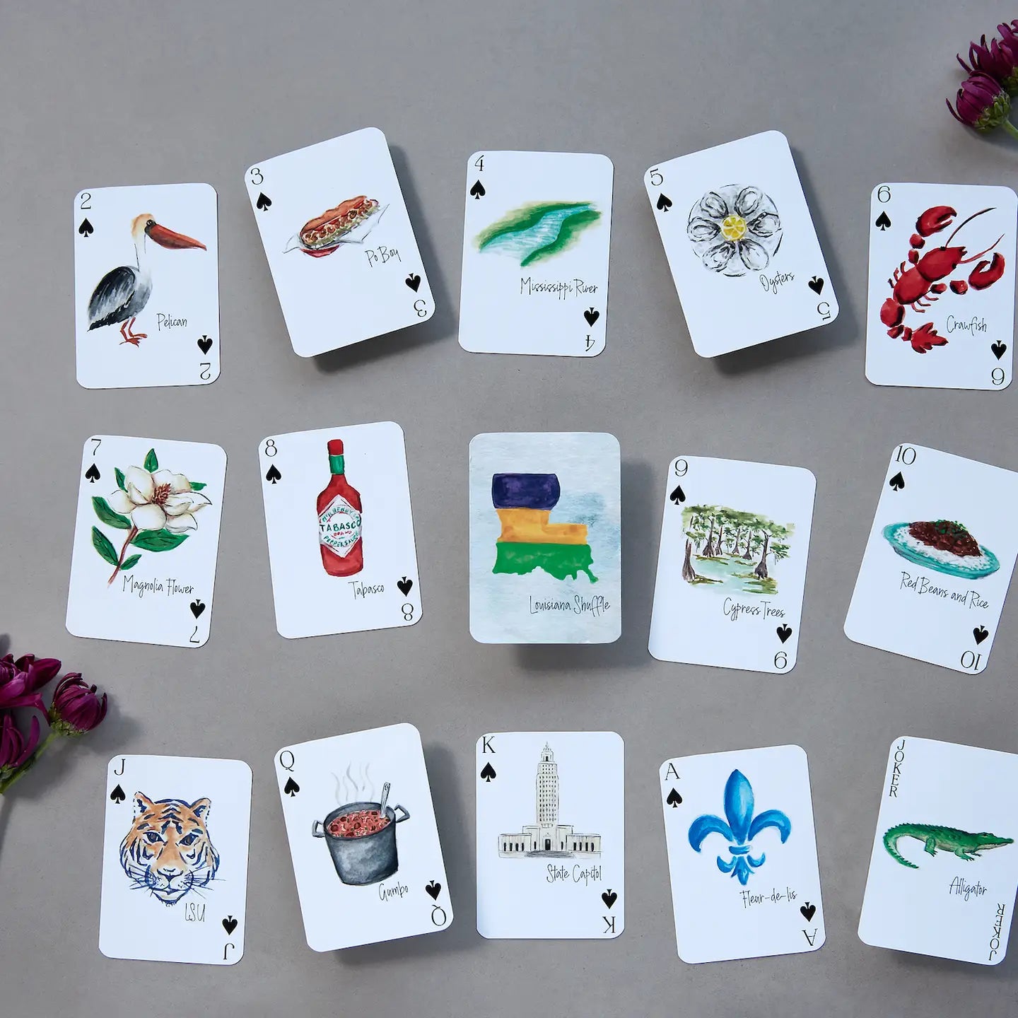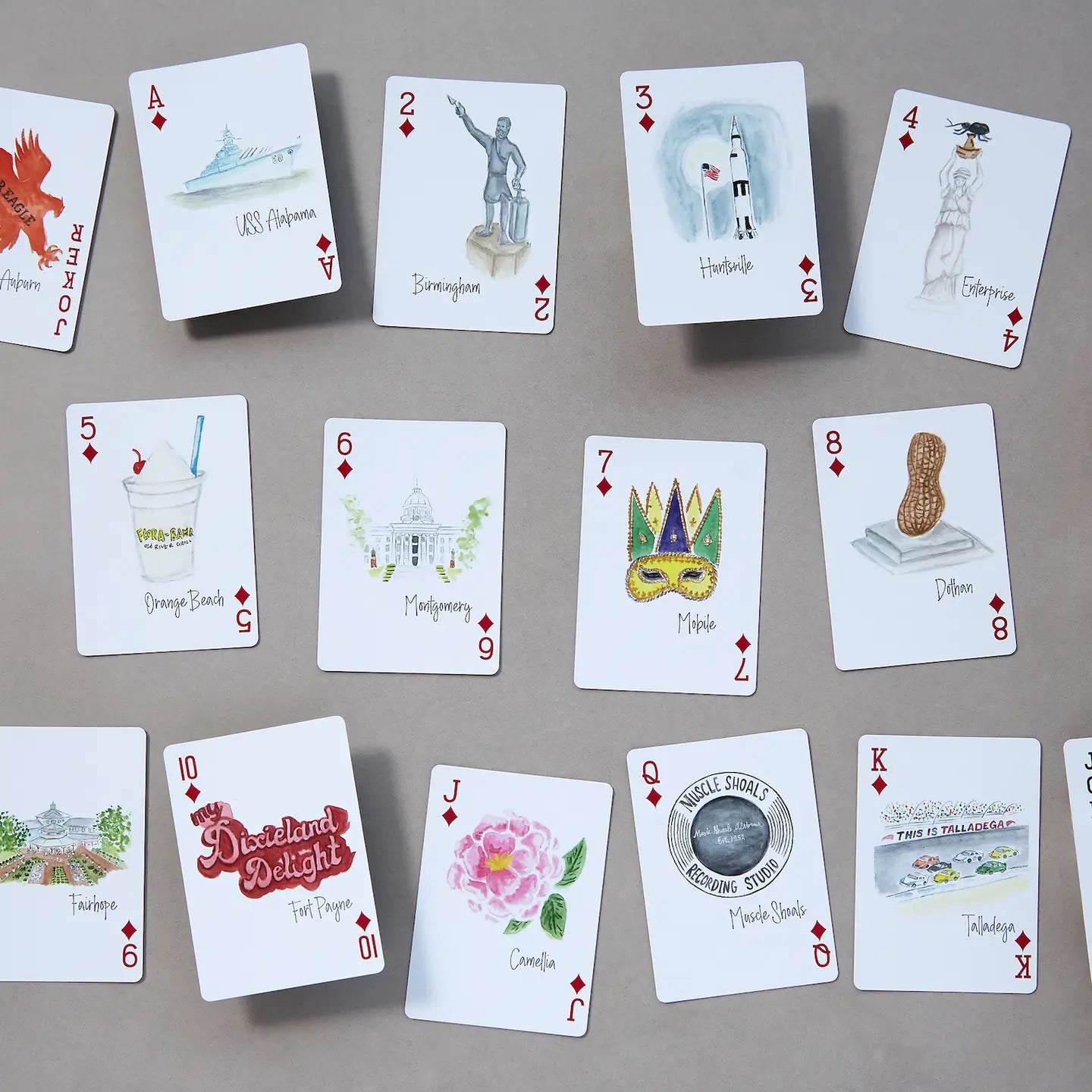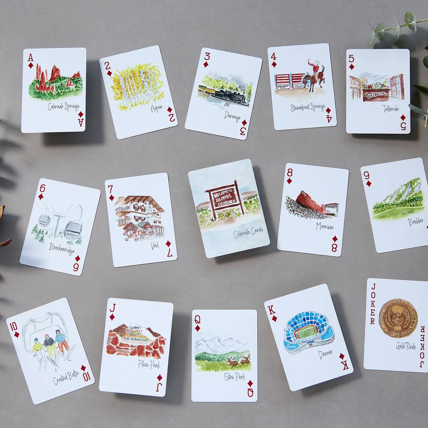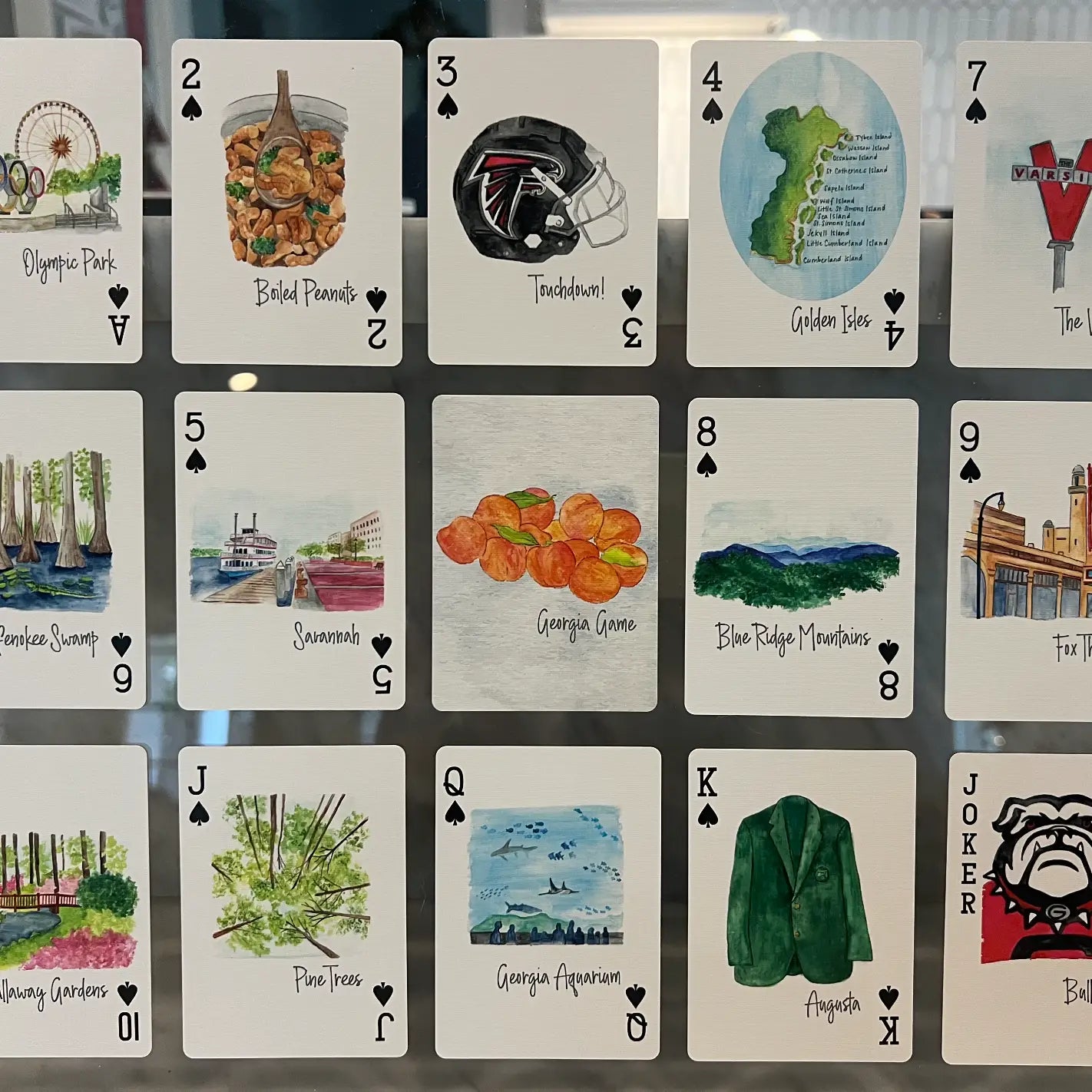 A deck of destinations, every shuffle reveals a new watercolor cityscape. We love these city and state themed watercolor playing cards featuring 15-20 different images representing the heart of your favorite places.