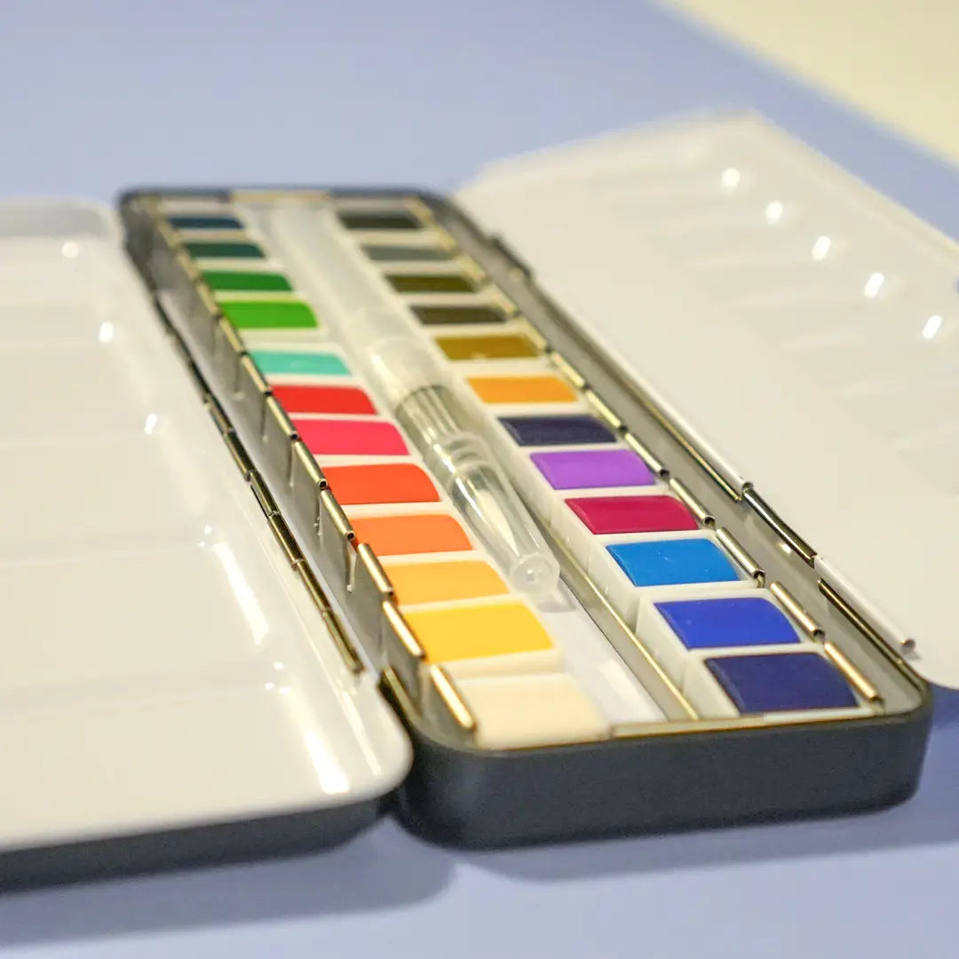 Details: - 12 beginner-friendly illustrations - Thick 120lb watercolor paper - Lay-flat pages with spiral binding for hassle-free painting and easy tear-out - Lightly outlined sketches to guide you - Easy to carry, travel-ready 6.5" x 9" size- 24 Color Watercolor Paint Palette included - Set of 5 wood brushes included. Original artwork by Emily Lex - Designed and printed in the USA