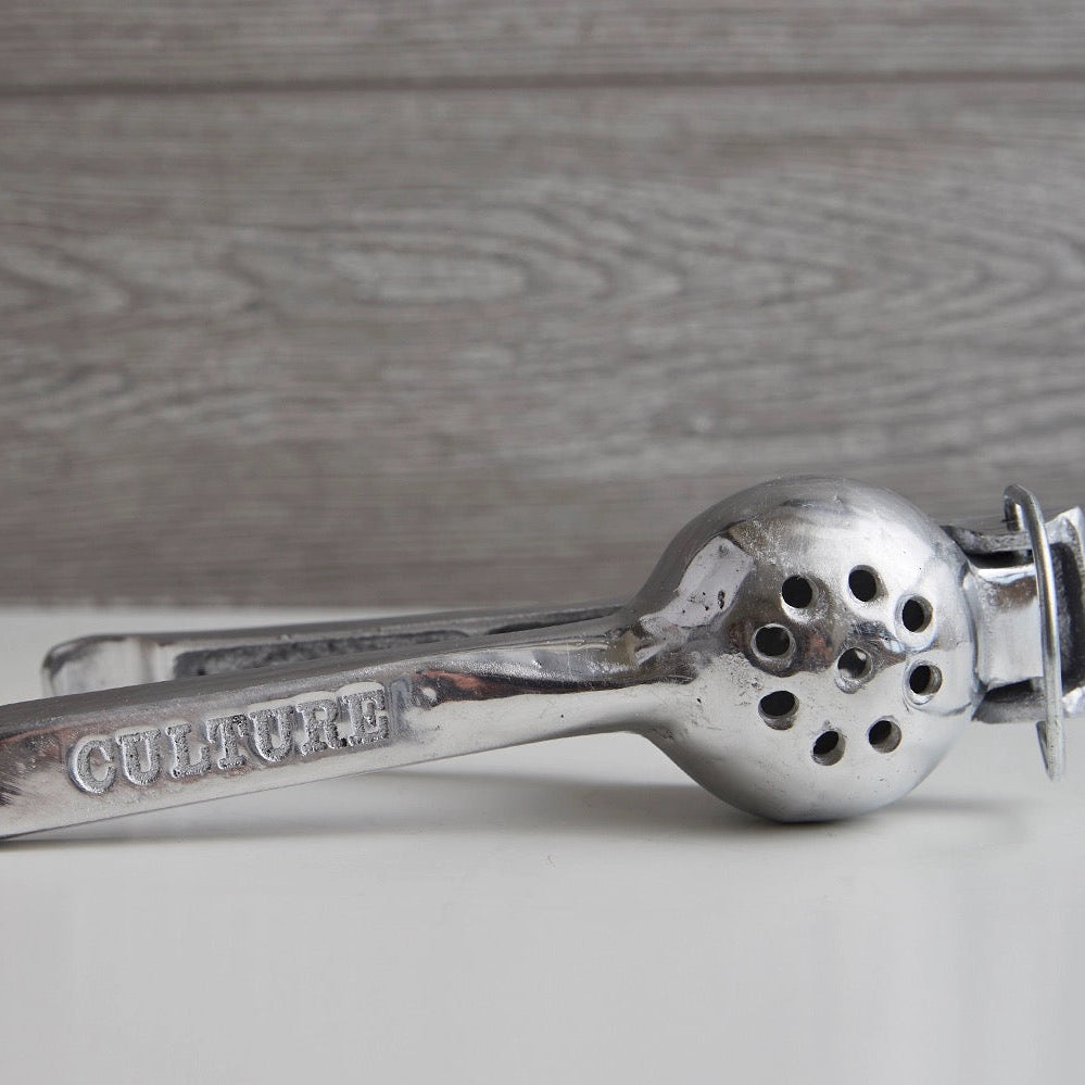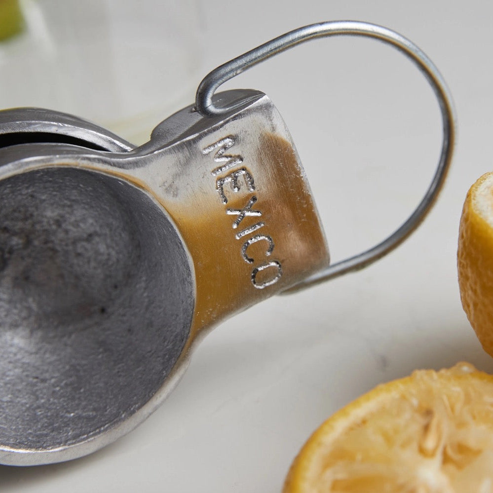 Streamline your kitchen or bar with our efficient and user-friendly aluminum hand juicer. Expertly crafted by skilled artisans in Mexico, this cast hand squeezer guarantees the perfect extraction of fresh lemon and lime juice for your seltzers, cocktails, marinades, and more! Experience the exceptional quality and timeless style that will stand the test of time, making it a cherished tool for generations to come. Elevate your culinary delights with this must-have juicer, and enjoy the unmatched convenience and taste!
