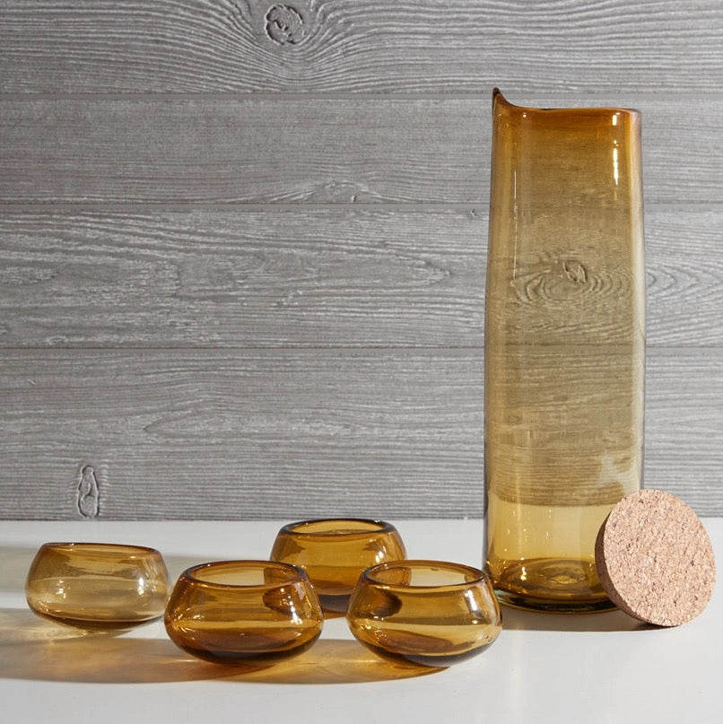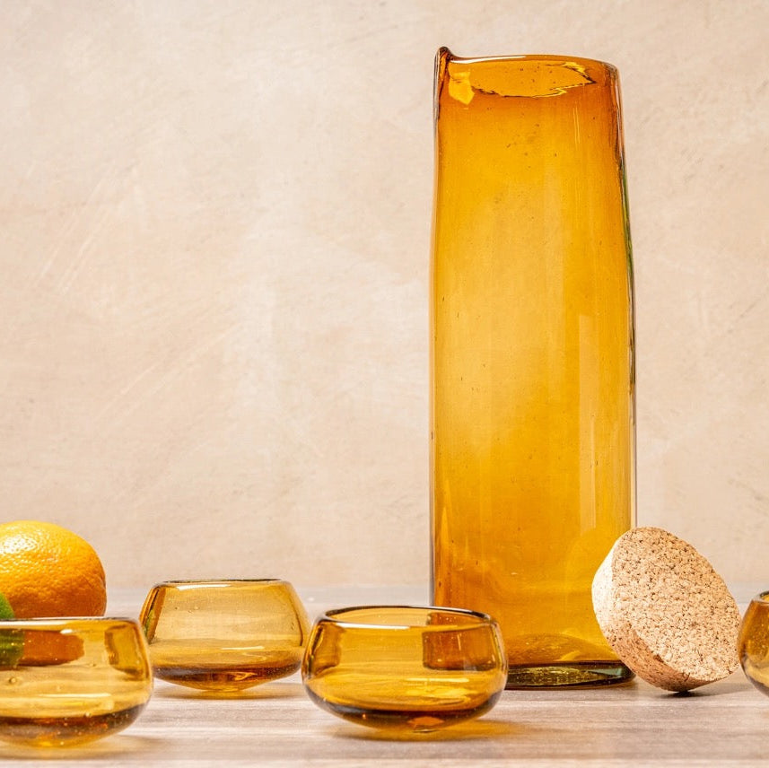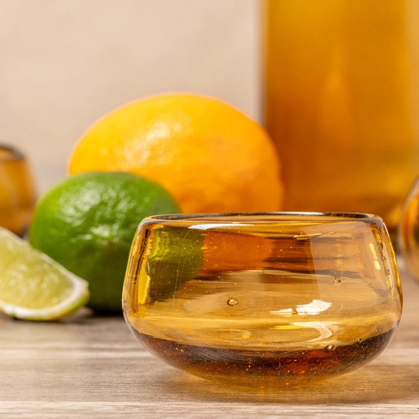 As tequila and mezcal's popularity soars, explore the art of flavor experimentation with our Infuse Set. Embrace tradition with four jicaras - small cups crafted from jicara fruit bark, designed to enhance the full expression of mezcal by allowing alcohol to evaporate. These handblown glass-tasting cups feature wide mouths, ensuring maximum flavor absorption. The set also includes a wide-top decanter with a robust cork seal, preserving your creations perfectly. Delight in the world of mezcal with our Infuse Set, which comes with recipes and an elegant gift box. Elevate your tasting experience now!